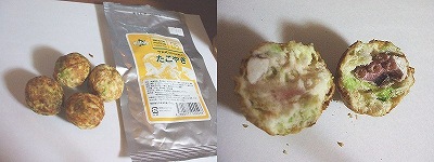 美味い。たこ焼き味のスナックをさらにたこ焼きにした味。加工前が本物のたこ焼きなのだから当たり前か。